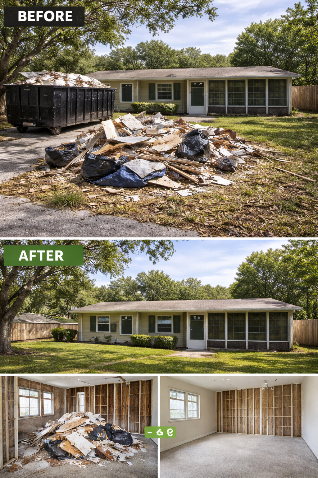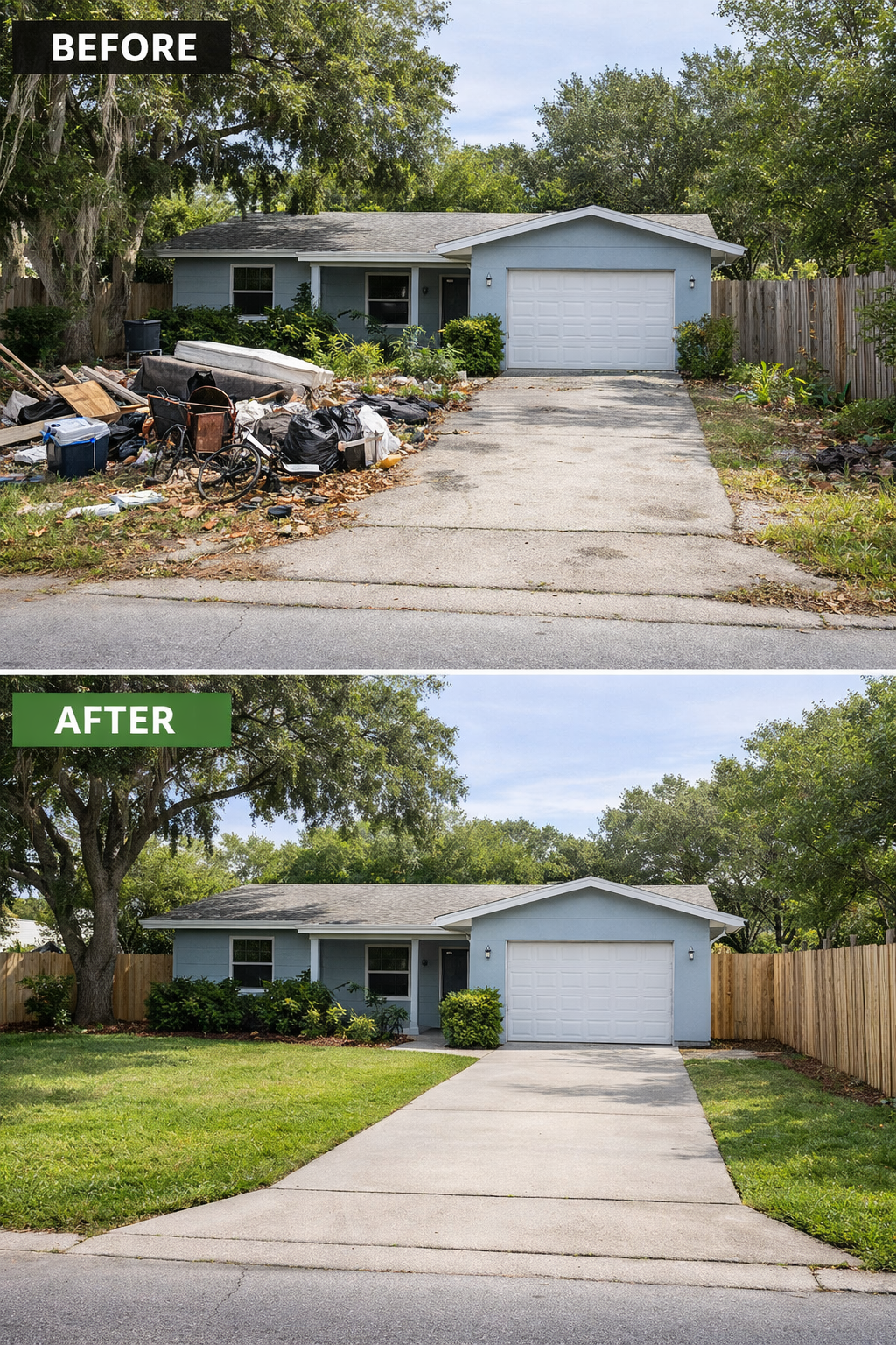 Outdoor services help landowners and homeowners reclaim overgrown or neglected yards and lots. We specialize in tree trimming and removal, underbrush clearing, lot clearing, and exterior refresh to restore safety, accessibility, and curb appeal. Construction debris hauling and junk removal eliminate accumulated clutter, while hurricane and storm cleanup quickly restore order after severe weather. We transform unusable outdoor spaces into clean, well-maintained areas, making properties safer, more attractive, and ready for tenants, sale, or personal enjoyment.